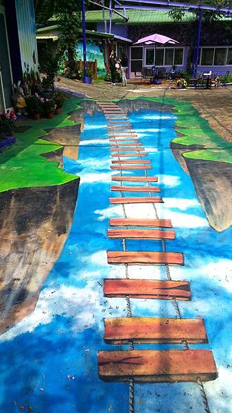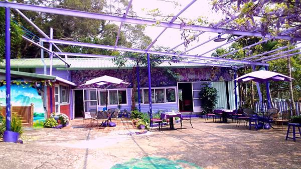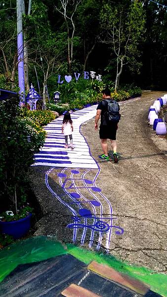 看~小坡道兩旁的石磚也都漆上浪漫紫色