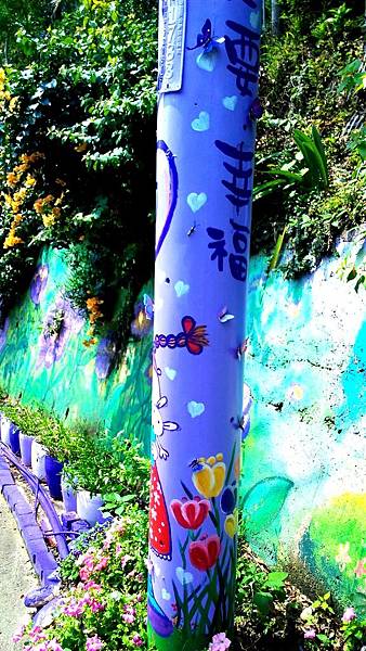 電線桿也是紫色 很用心的放置了美麗蝴蝶