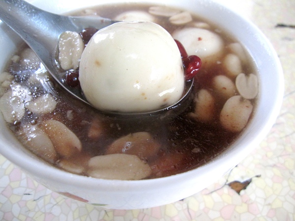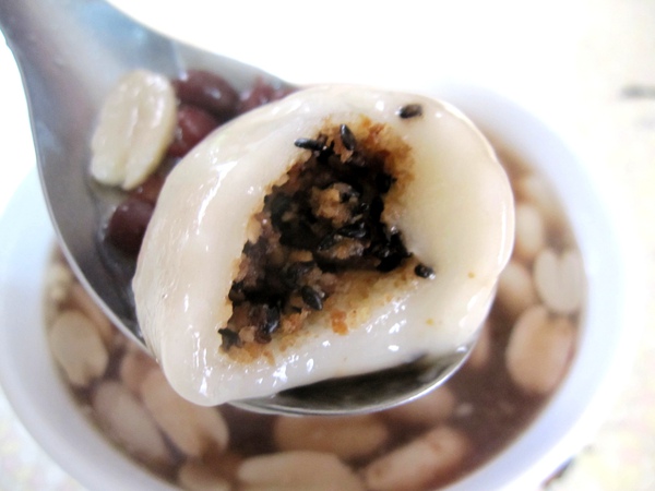 包著花生芝麻內餡的湯圓 皮好Q 內餡很香