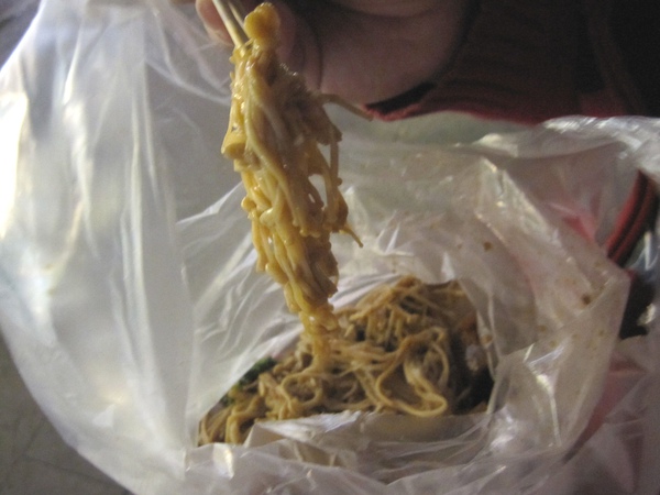 我們二個就帶著這份滷味,坐在火車站外享用,看著來來往往的人潮~雖然冷風颼颼~但有哈呢在身邊,好好唷~