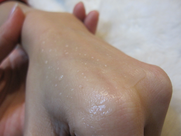 有趣的來囉~將護手霜推開,推著推著,竟然出現了一層水珠也~