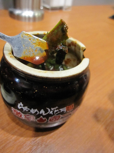 每桌都備有一壼陶罐裝的嗆辣韭菜壼,愛吃辣的人不要錯過,我只咬了一小口就好辣喔~