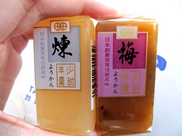 栗子、梅子口味的羊羹,栗子吃起來有點淡,梅子味道比較好吃也~~